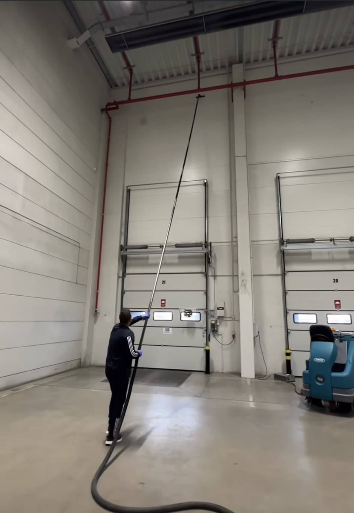 Możemy odkurzać ściany i różne elementy w halach i magazynach do wysokości 20 m.